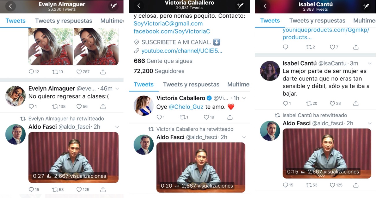 Una fuente del equipo de Aldo Fasci me confirmó que desde anoche se contactó a los infulencers, pero como batallaron por varias horas para que Aldo Fasci le diera el toque de valentía a la grabación, decidieron que fuera hasta el día de hoy que tendrían que entrar al quite los contratados influencers, muchos de ellos son ampliamente conocidos por realizar campañas políticas en redes sociales, que quede claro que a éstas personas (influencers) no las juzgo ya que es un trabajo que ellos hacen, lo que sí critico, es la poca madre de Aldo al utilizar ésta clase de temas tan dolorosos para la sociedad, ahora si que NO se vale lucrar con el dolor ajeno, irresponsable y aprovechado se ve Aldo Fasci, ojalá que la ciudadanía lo castigue negándole el voto, ya que fue sumamente bajo el usar ese tema para hacerse publicidad.