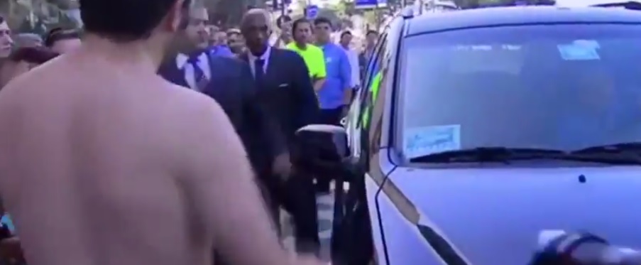 El mexicano confuso insultó y llamó tramposo al jugador de Holanda por «echarse un clavado» en el partido contra México, además de hacerle señas burlonas, y aunque ahí se encontraban autoridades brasileñas dejaron al aficionado desahogarse, hasta que el auto abandonó el lugar.